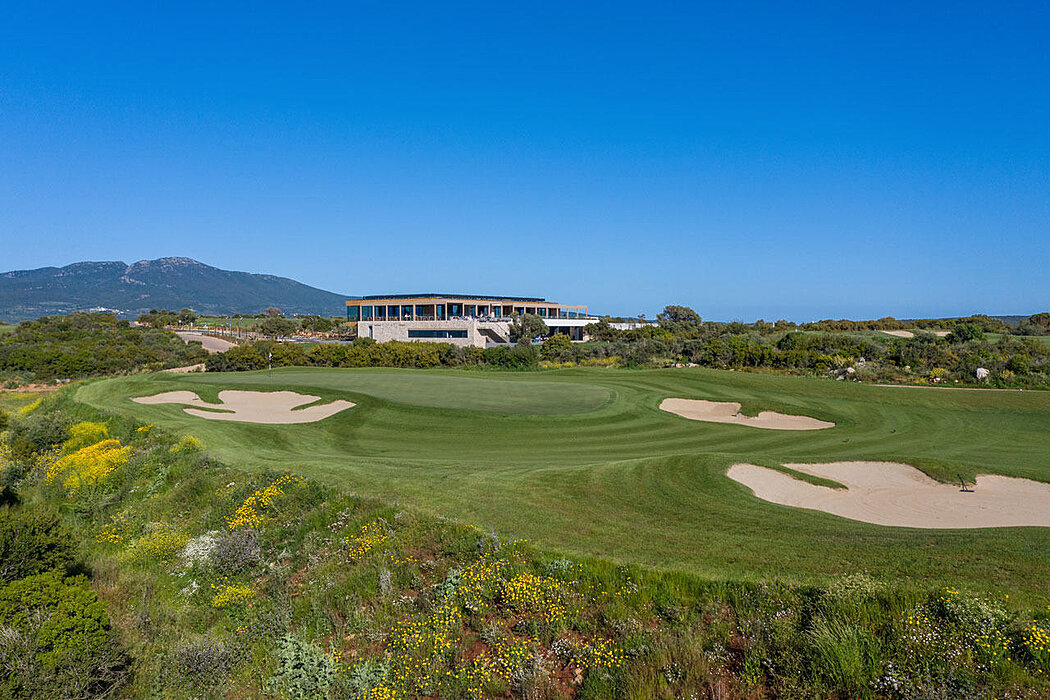 Navarino Hills boasts two 18-hole golf courses – The International Olympic Academy Golf Course and The Hills Course, masterfully designed by Olazabal Design. The clubhouse occupies a strategic position between the golf courses, providing easy access for golfers and visitors. Situated at one of the site’s highest points, 215 meters (705 feet) above sea level, the 34,670-square-meter (372,888-square-foot) building complex consists of approximately 2,630 square meters (28,309 square feet) of space, including ground and first floors, as well as a basement.